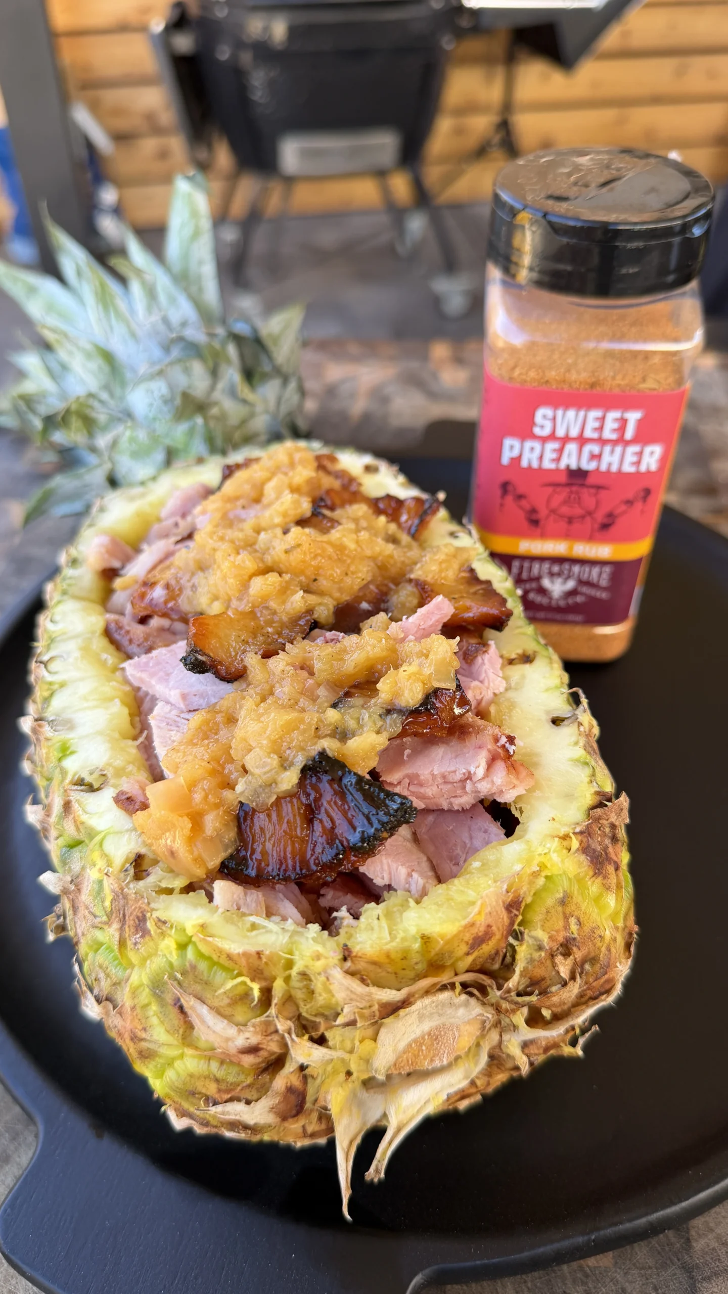 Smoked pineapple ham uses an 8-12 lb spiral-cut ham rubbed with Dijon mustard and Sweet Preacher seasoning, covered with fresh pineapple chunks …